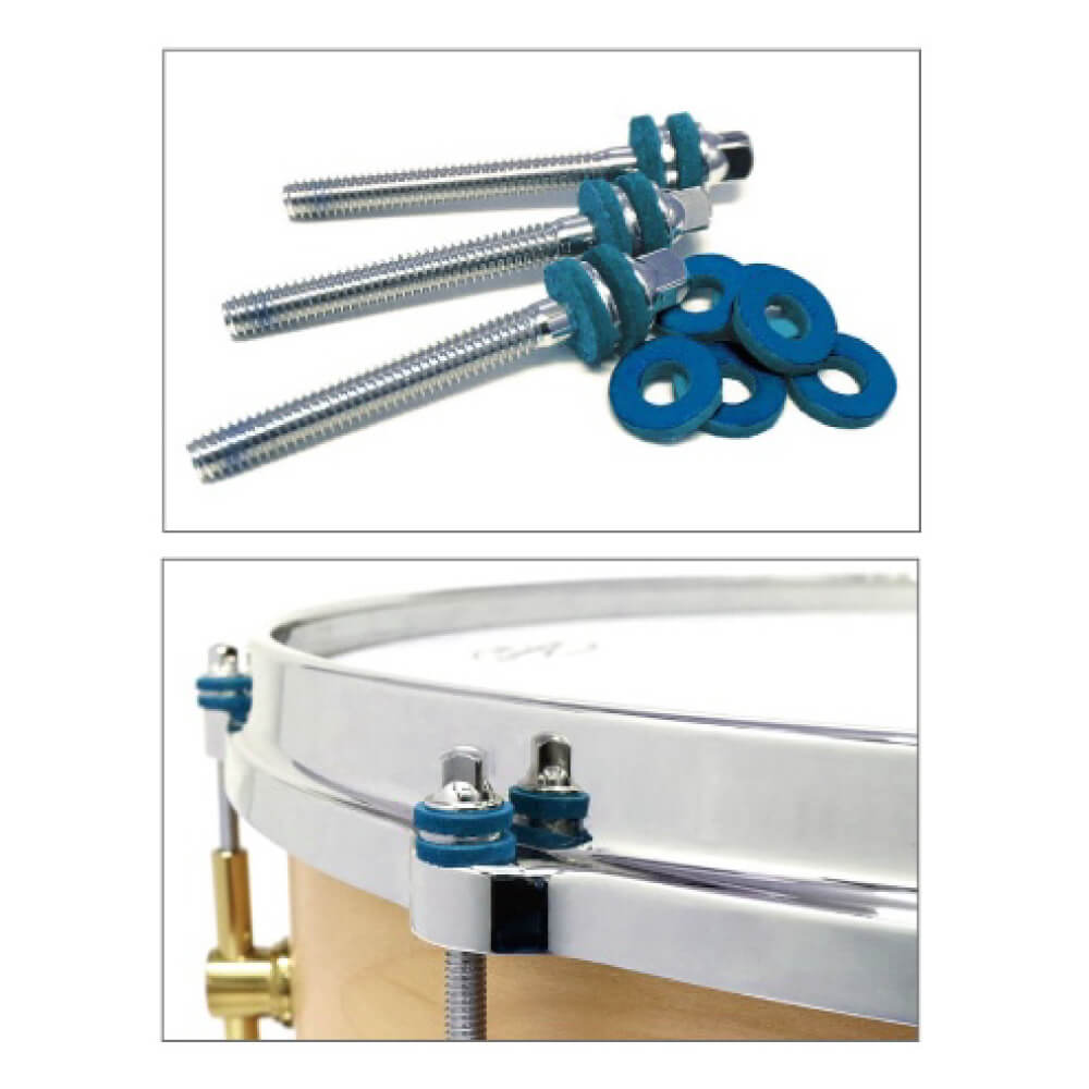 「簡単に装着でき、思ったところでボルトがピタリと止まり、弛みにくくなる。しかもドラムの倍音をカットしてくれ、ドラムサウンドがファットになり、安価で耐久性もある」 そんなドラマーの要望を具現化したのがこのボルトタイトです。ドラマーはもちろん、ドラムテックやレンタル業者からも絶大な支持を得ています。使ってみなければこの大きな効果はおわかりいただけないでしょう。