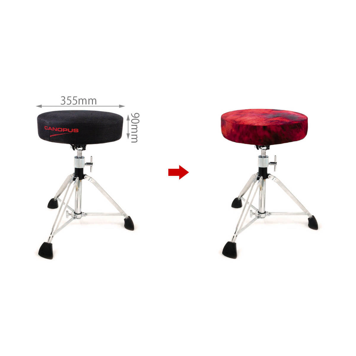 ※本品はCDT(ハイブリッド・ドラムスローン)用に開発された製品ですが、サイズの近い製品にも装着可能です。