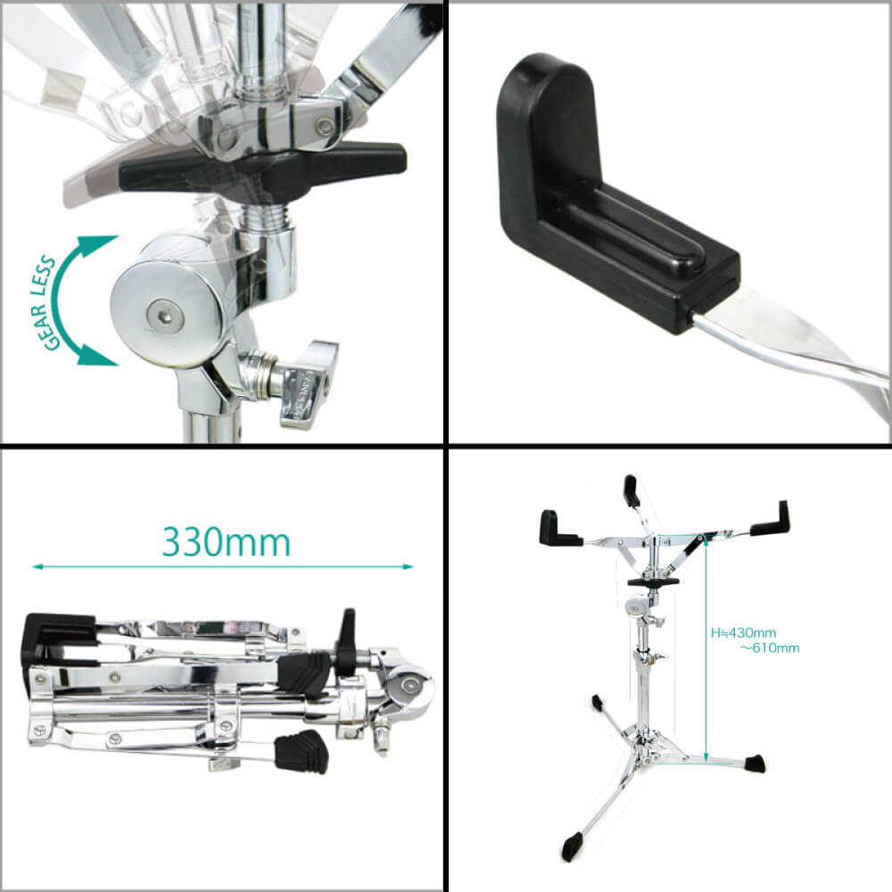 コンパクトで、持ち運びに便利なことを優先事項に開発した、フラットベーススネアスタンド。 バスケット角度調整をギアレスにし、さらに使いやすくなりました。フラットベースシンバルスタンドと合わせてあなたの起動力をサポートします。タムスタンドとして使用してもフラットベースはセッティングが便利です。