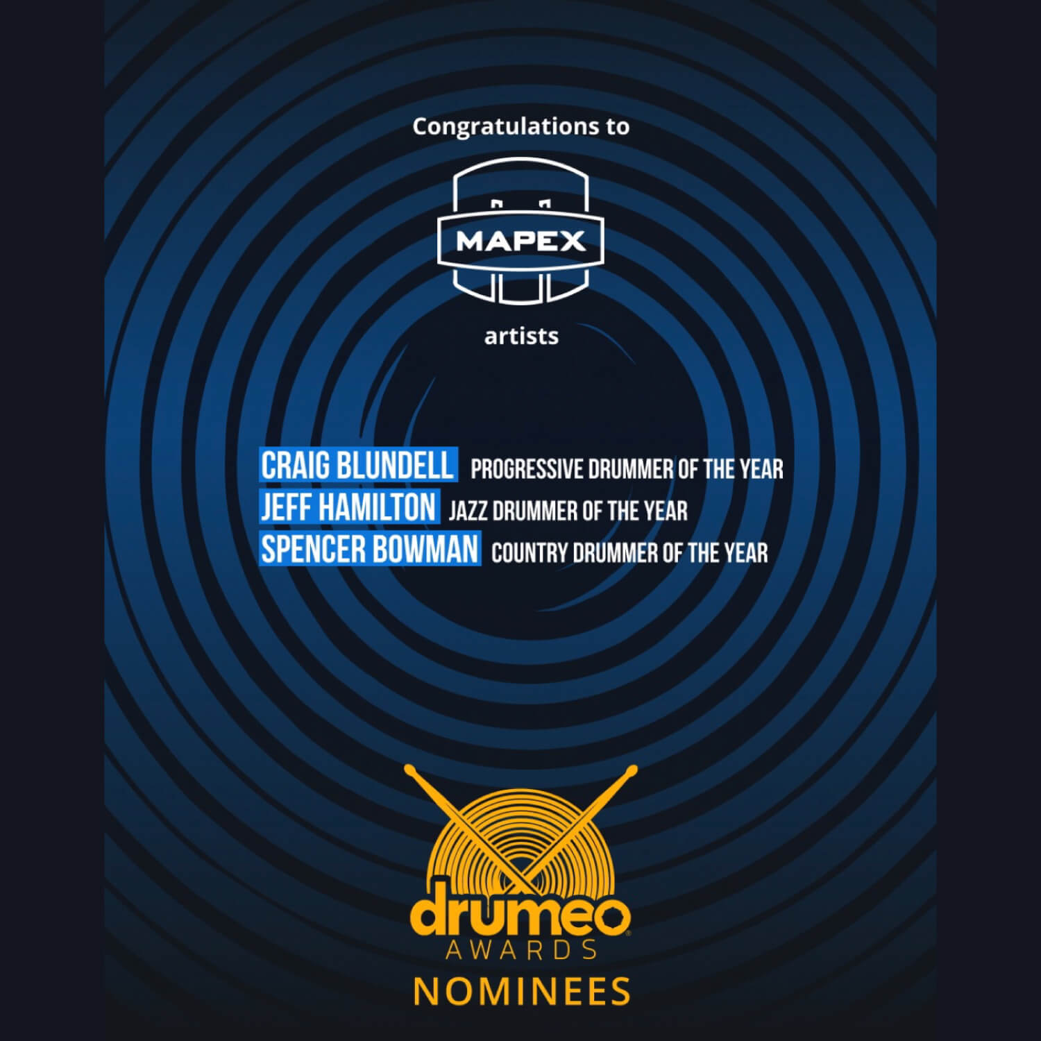 カナダを拠点とする世界最大級のドラム教育プラットフォーム「DRUMEO」 2025年度の各部門の賞に MAPEXアーティスト「JEFF HAMILTON」がノミネートされました。