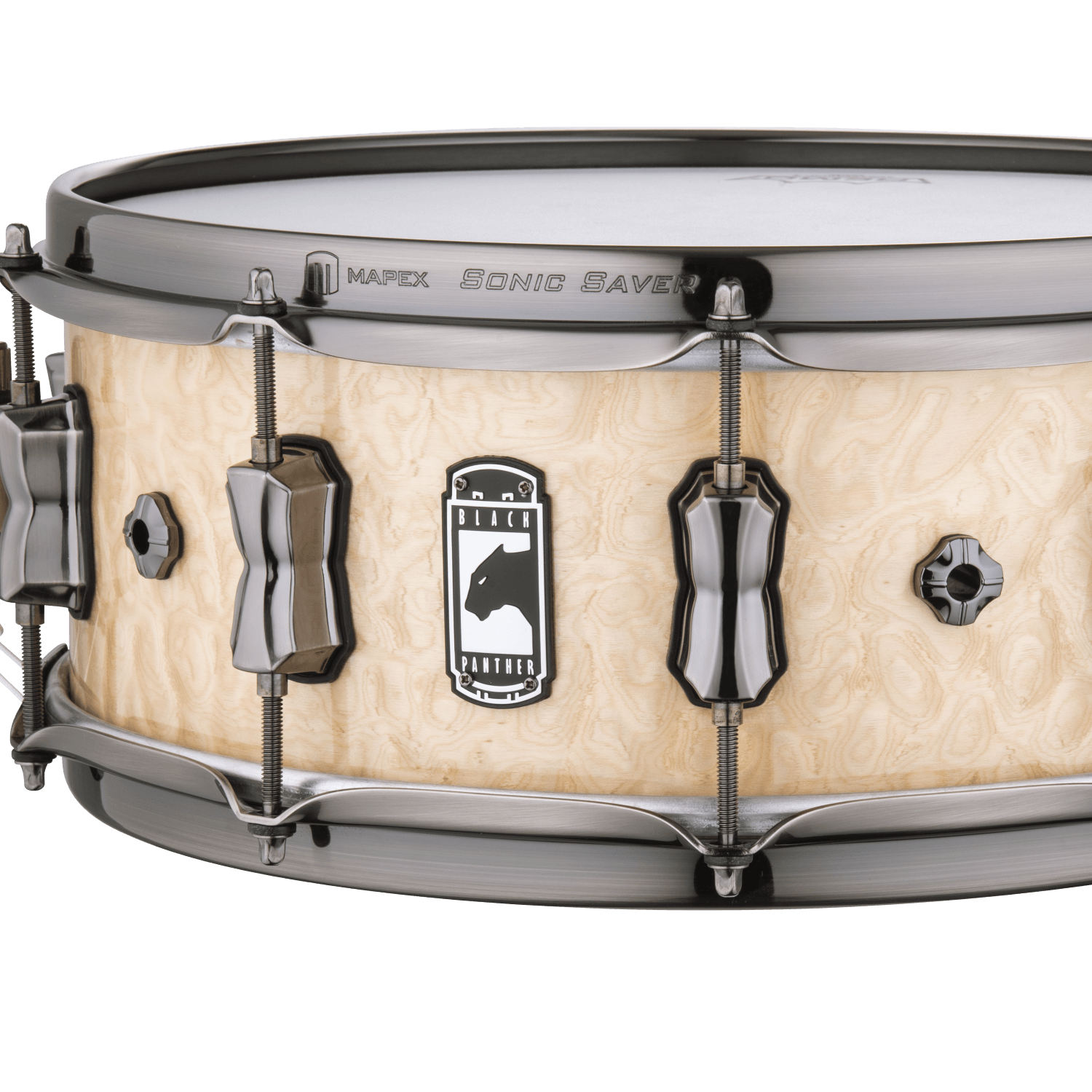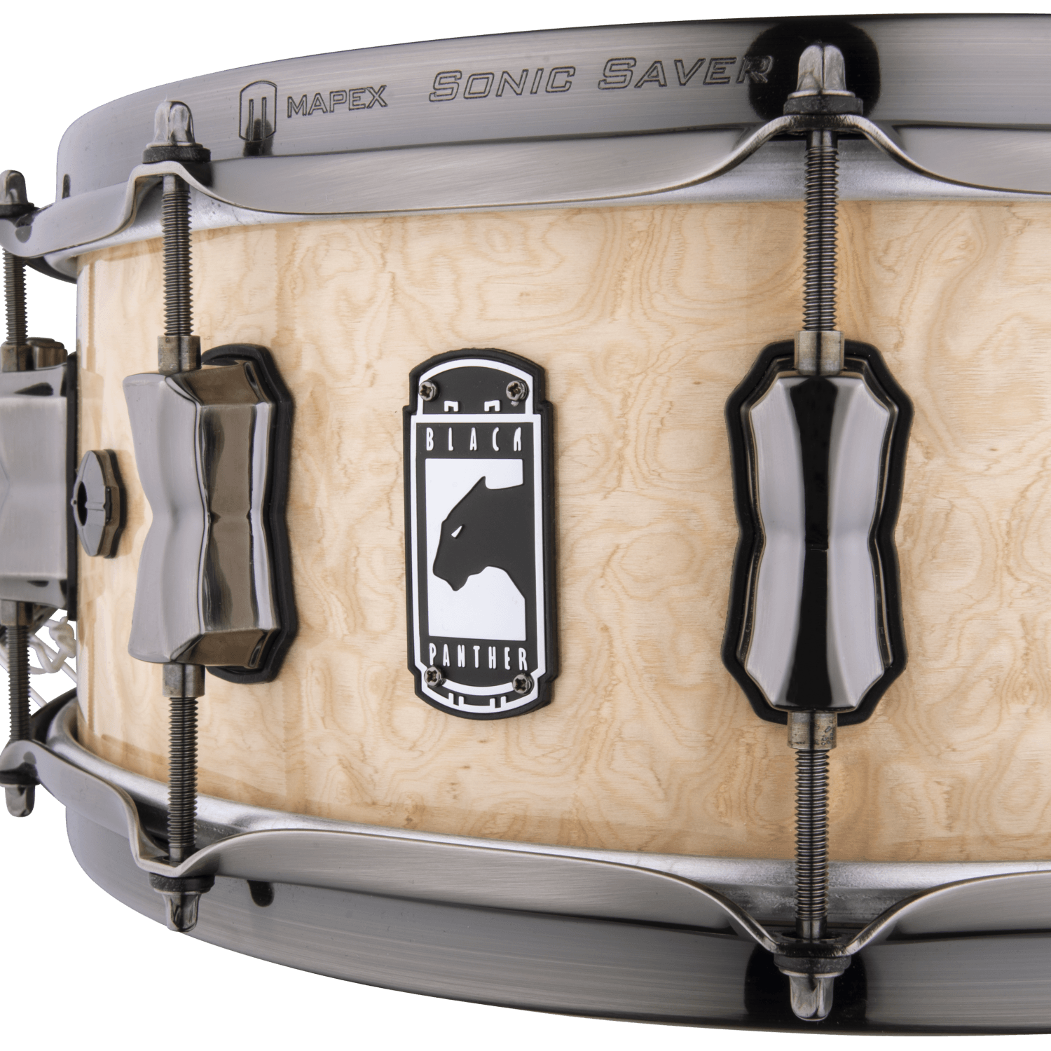 1997年に衝撃的デビューを飾り、発売以来大きな成功を収めているメイペックス・フラッグシップ・スネアドラムシリーズ“Black Panther(ブラックパンサー)”。理想のサウンドコンセプトを先に決めそれに合わせてシェルの材質や厚み、ベアリングエッジ形状、フープ、ラグ、スナッピー、ヘッド、フィニッシュ等をセレクトし最適化。さらに、メイペックス研究センターでの科学的トライアルに基づき素材や周波数特性を分析して設計に反映。その結果、それぞれに個性豊かなネーミングを施されたそれぞれに際立ったモデルが生み出されています。さらに、メイペックス独自のAir Flow Venting(エアフロー・ベンティング / 空気穴)やCylinder-Drive Strainer(シリンダー・ドライブ・ストレイナー)といった装備も搭載しており、自社のみならず、世界のドラムメーカーをリードするスネアドラム・シリーズとなっています。