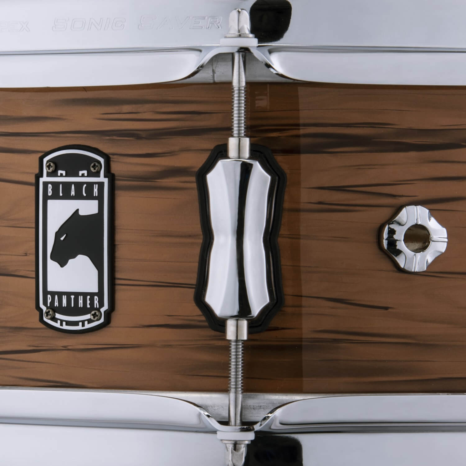 “スコーピオン”はその名の通りの“サソリ”の様に突き刺すアタックサウンドが魅力。スタンダードサイズ(14"x5.5")のマホガニーシェルにブラックパンサーシリーズでは珍しい“Wrap(カバリング)”フィニッシュ。そして、Sonic Saver Hoops(ソニックセイバー・フープ)という仕様により、エッジの効いたサウンドとドライなトーンを併せ持つ現代のレコーディングに最適なサウンドを実現。3つの“Air Flow Venting(エアフロー・ベンティング)”が最適なレゾナンスと打感を提供します。