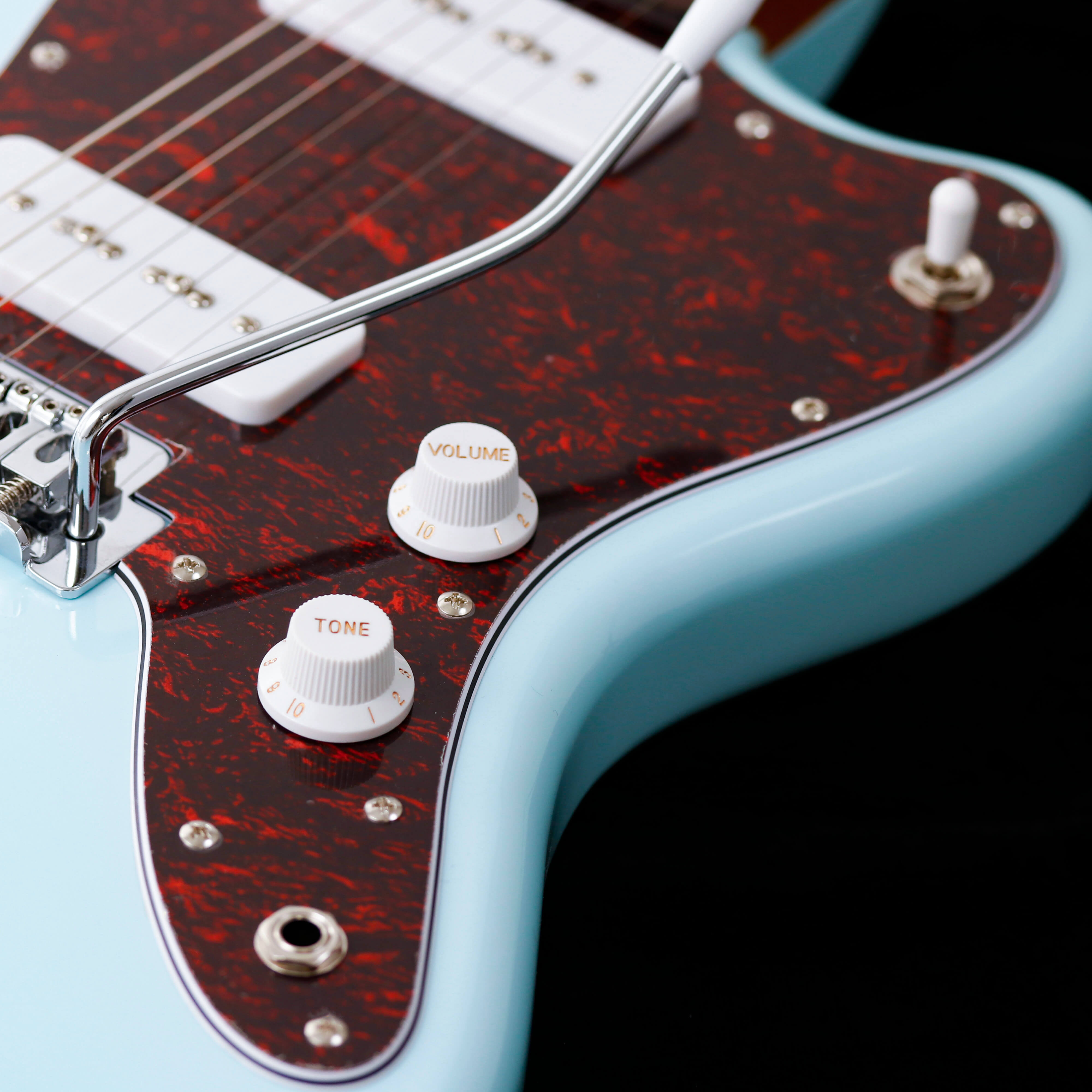 定番のJMスタイルをベースにした「SJM-500」は、P90タイプ・ピックアップとローステッド・メイプルネックを採用し、機能性と低価格を兼ね備えたコストパフォーマンスに優れるモデルです。ヴィンテージタイプのトレモロブリッジによって通常のJMモデルよりも快適なアーミングと安定したチューニングを実現し、さらにネックジョイント部分にヒールレスカットを施すことでハイポジションでの演奏性も高めています。