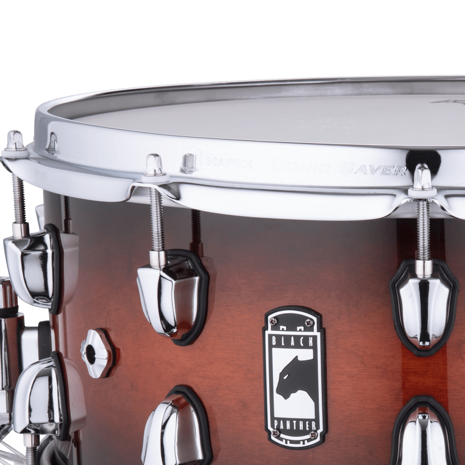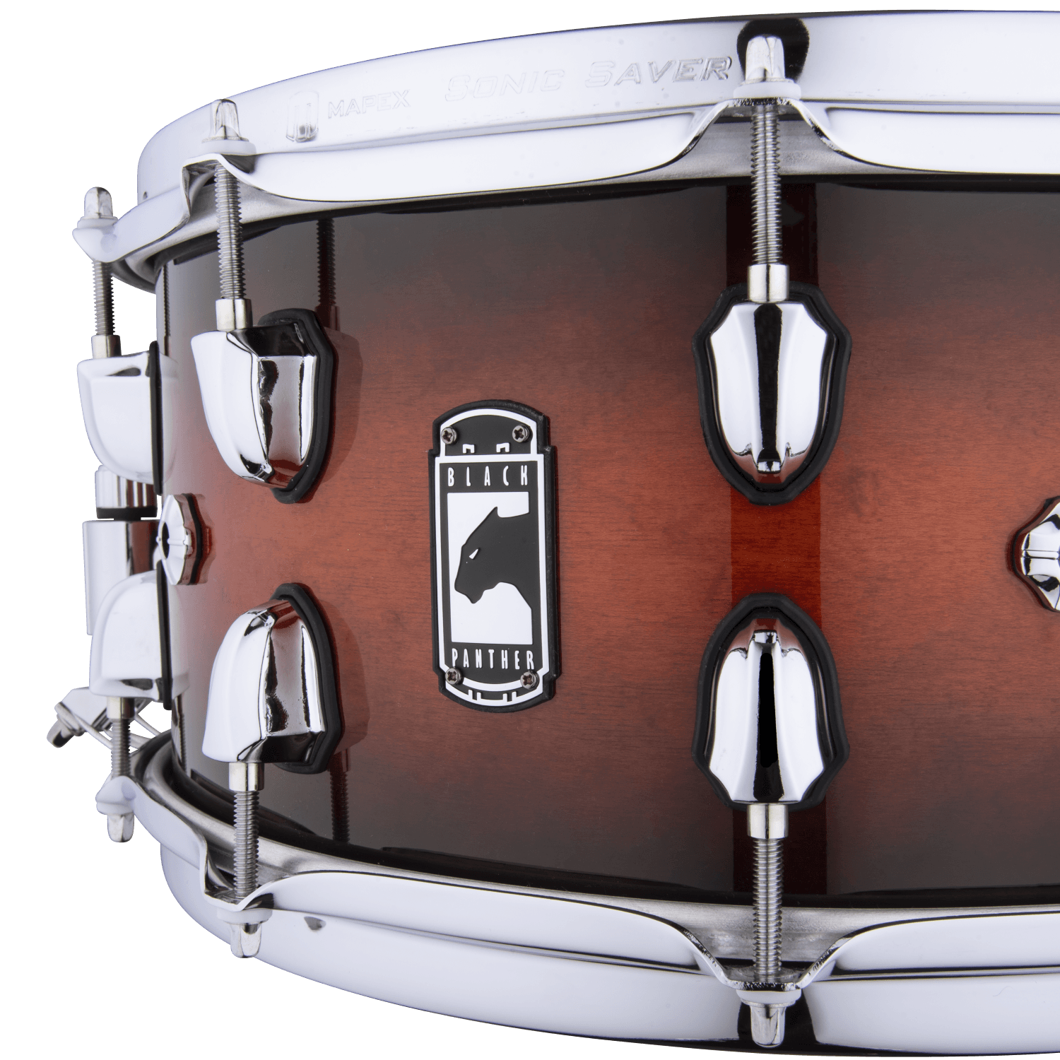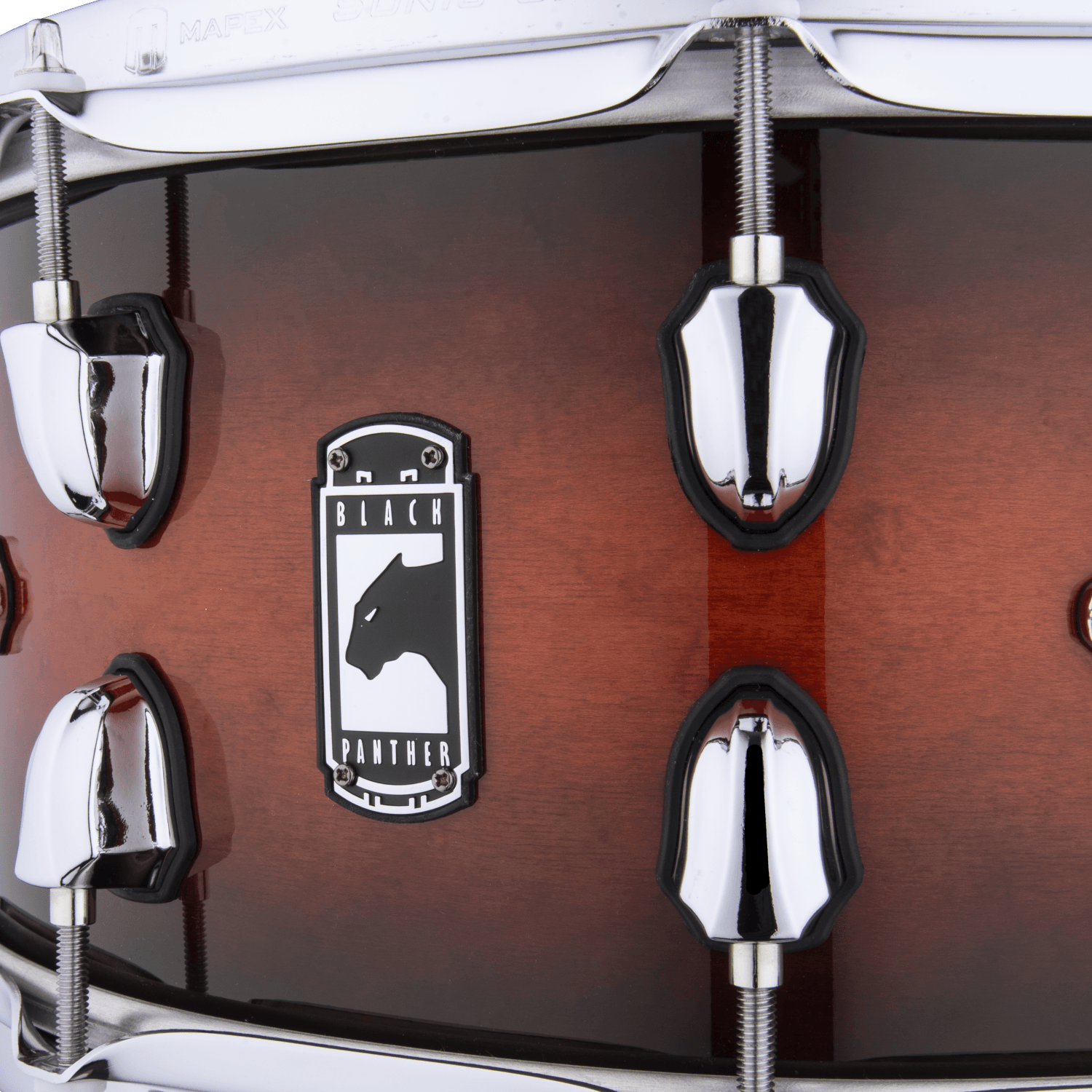 1997年に衝撃的デビューを飾り、発売以来大きな成功を収めているメイペックス・フラッグシップ・スネアドラムシリーズ“Black Panther(ブラックパンサー)”。理想のサウンドコンセプトを先に決めそれに合わせてシェルの材質や厚み、ベアリングエッジ形状、フープ、ラグ、スナッピー、ヘッド、フィニッシュ等をセレクトし最適化。さらに、メイペックス研究センターでの科学的トライアルに基づき素材や周波数特性を分析して設計に反映。その結果、それぞれに個性豊かなネーミングを施されたそれぞれに際立ったモデルが生み出されています。