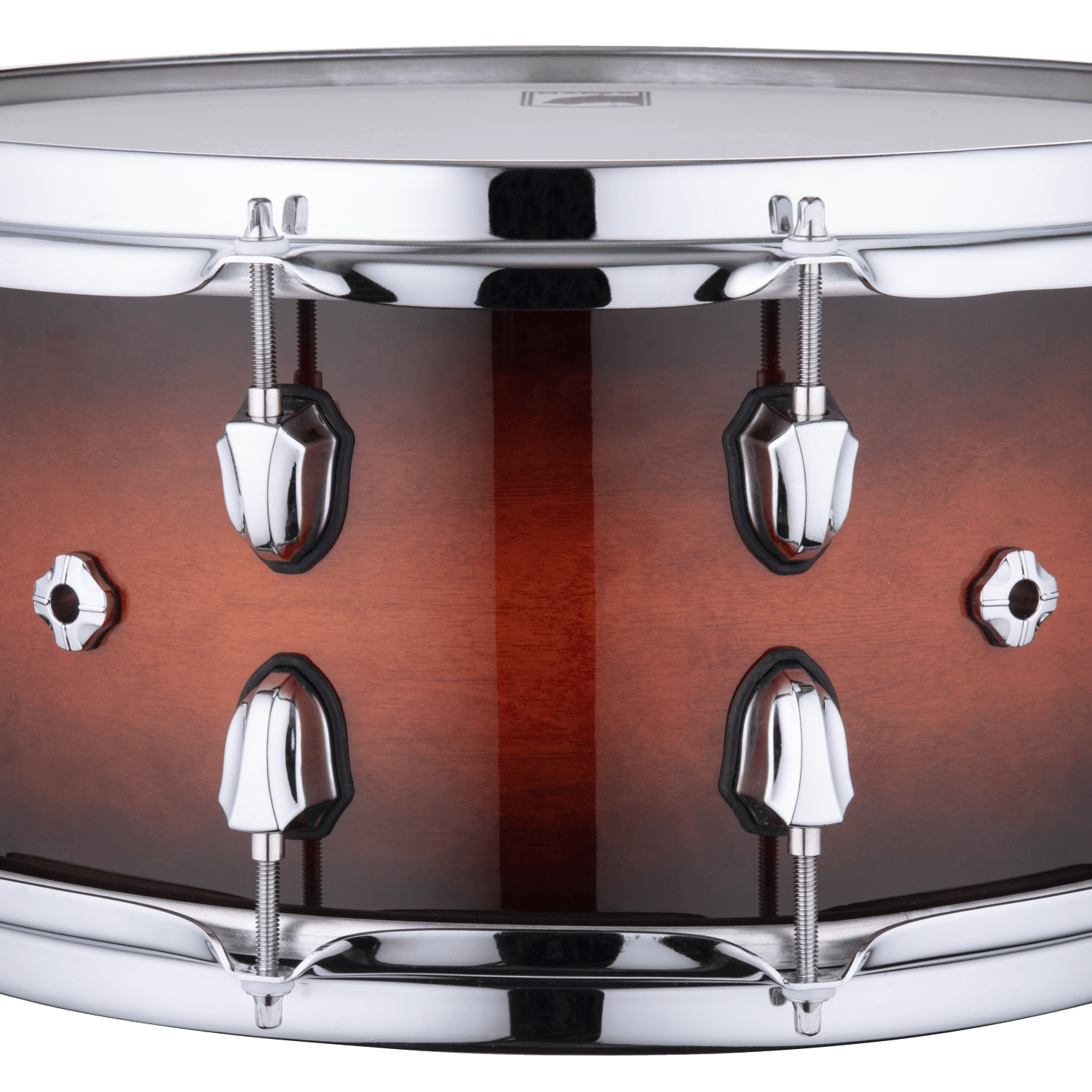 “ソリダス”は「揺ぎなき王」の様な存在感を意味し重厚、かつ切れの良い抜けの良さを持つサウンドが特徴です。11プライ/11mm、深さ7インチという分厚く頑強なメイプルシェルにより、ローピッチの存在感があり深みのあるサウンドからハイピッチの突き抜けるようなアタッキーなサウンドまで表現可能な幅広いチューニングレンジを持ったモデルです。重厚なバックビートを得意としロック・メタル・ファンク等立ち上がりのスピード感とパワーが求められるジャンルに適します。