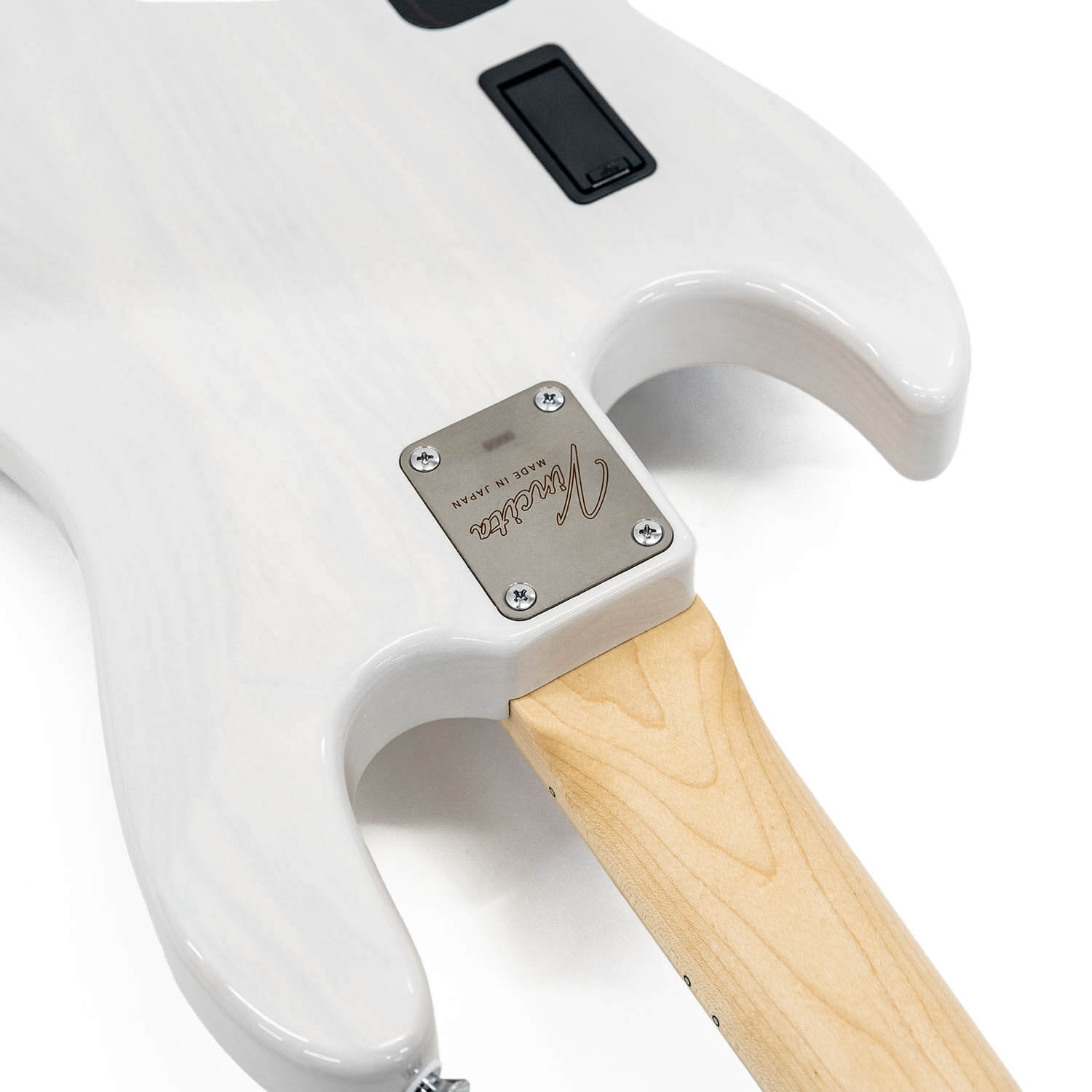 試作を重ねた末にたどり着いた、3mm厚のチタン製ネックジョイントプレートを採用。サスティーン、音の立ち上がり、そして全体の解像感が一段と向上しました。プレートを配置するため、ボディ側を削り出してフラットに整形。ストレスのない演奏性と高い剛性、その両立を実現しています。