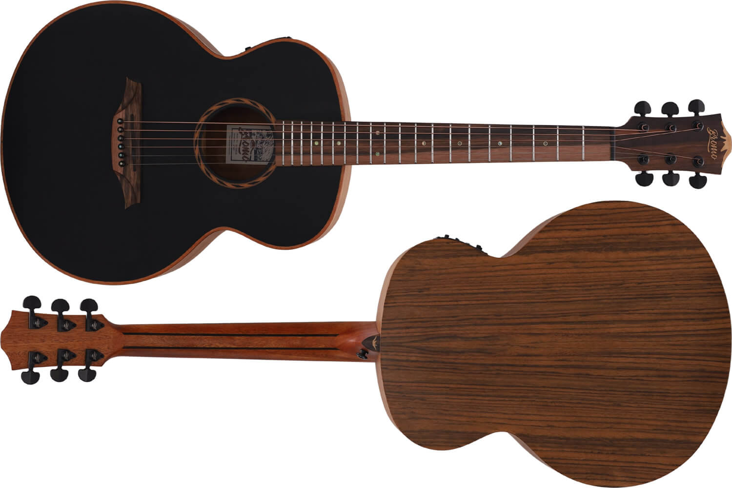 マホガニー単板トップ/ウォルナット・バック&サイド採用エレアコ「Bromo Guitars BAT8ME bk」