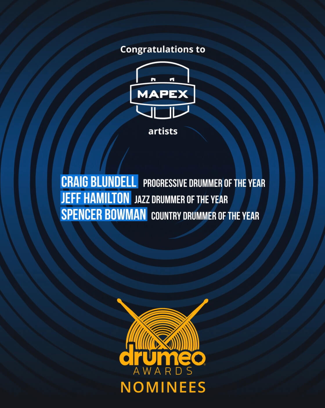 カナダを拠点とする、世界最大級のドラム教育プラットフォーム DRUMEO による 2025年度 各部門アワードにおいて、MAPEX アーティストの Craig Blundell、Jeff Hamilton、Spencer Bowman の3名がノミネートされました。