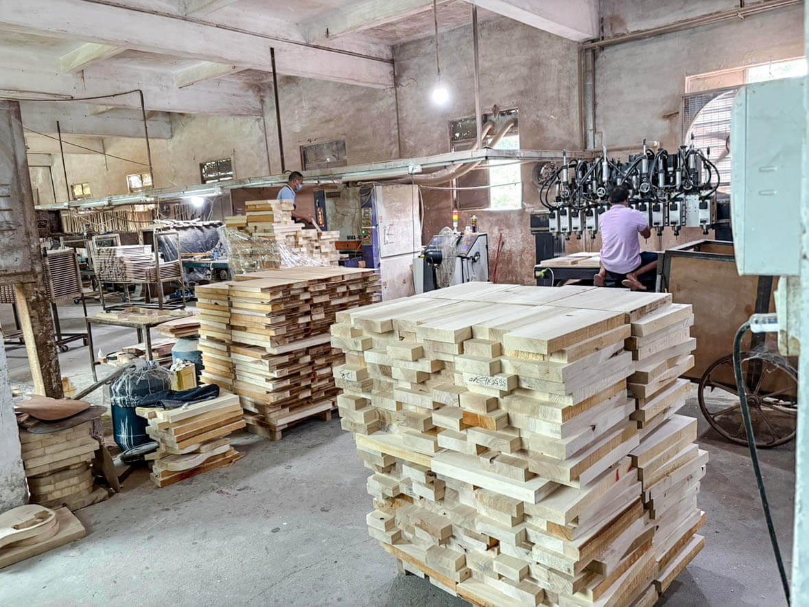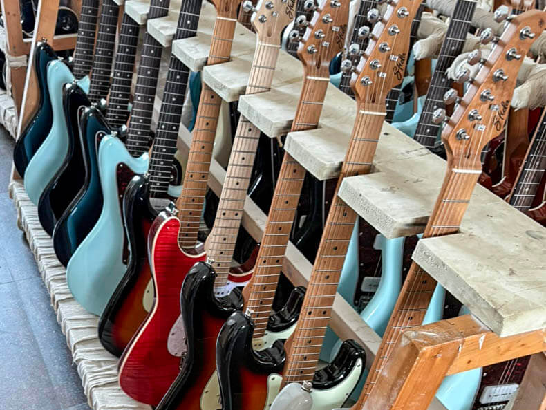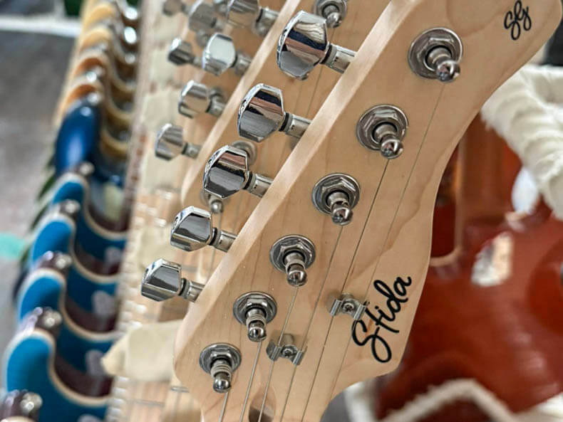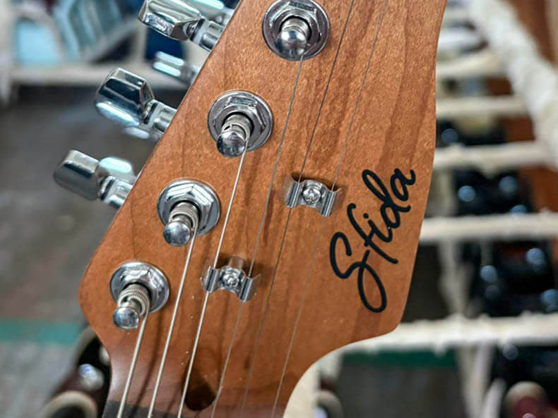 Sfidaの一部モデルには、ローステッド・メイプルを採用しています。ローステッド・メイプルとは、メイプル材を高温で熱処理し、内部の水分や油分を取り除くことで、長年弾き込まれた木材に近い状態へと仕上げた素材です。この工程により、木材は歪みやねじれが生じにくくなり、優れた耐久性と安定性を実現します。さらにサウンド面では、音の明瞭さやクリアさが際立ち、伸びやかで豊かな響きを得られるのも魅力です。もともとはハイエンド楽器で用いられてきた技術ですが、近年では手頃な価格帯のモデルにも広がり、より多くのプレイヤーがその恩恵を体感できるようになりました。