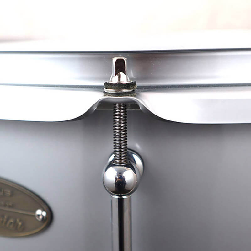 また、フープとシェルの表面処理にはビロード状メッキとも呼ばれるパールニッケルメッキにクリアコートを施し、クロームメッキよりも硬さを抑えた、耳当たりの良い余韻を強調。上質な質感と相まって、叩いた瞬間に違いが分かる、従来のスチールスネアとは一線を画す存在感を備えています。